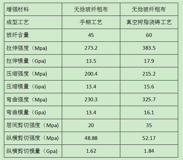 手糊工艺防雨帽和真空浇注工艺性能对比: